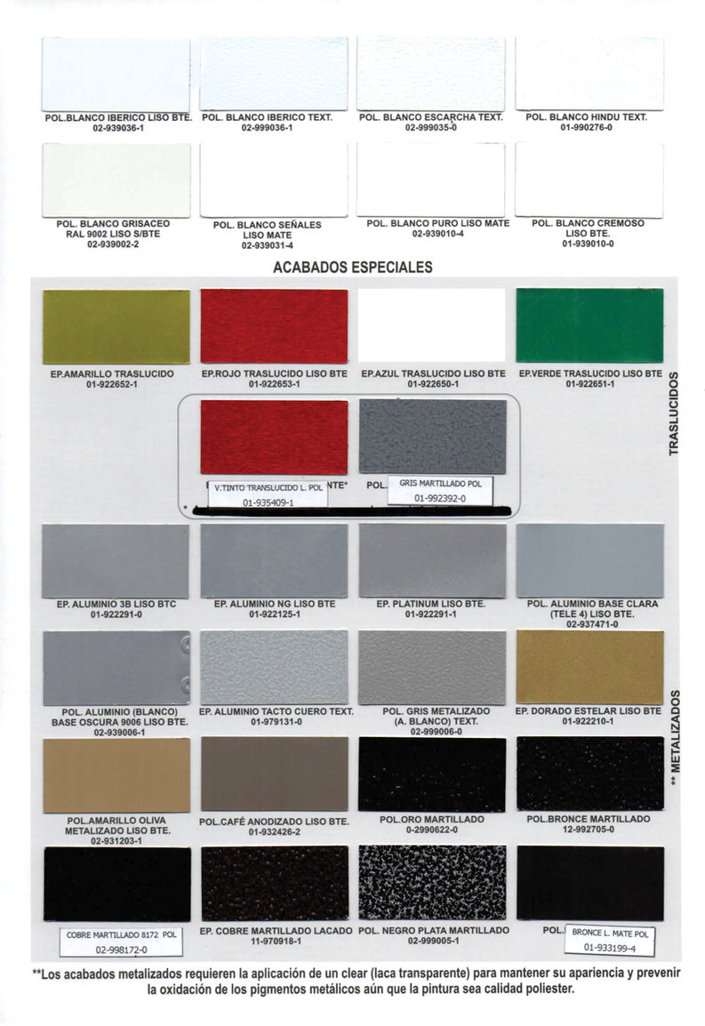 Contamos con una variada carta de colores y texturas, y asesoramos en cuál es la más indicada según el tipo de producto y uso. También si su uso interior o exterior y la durabilidad de cada uno.